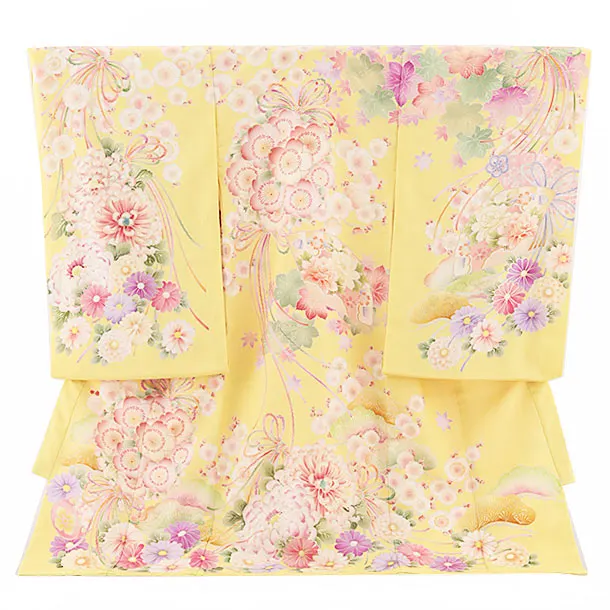 黄色地に優しい色使いが、上品さをより一層引き立てます。