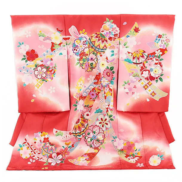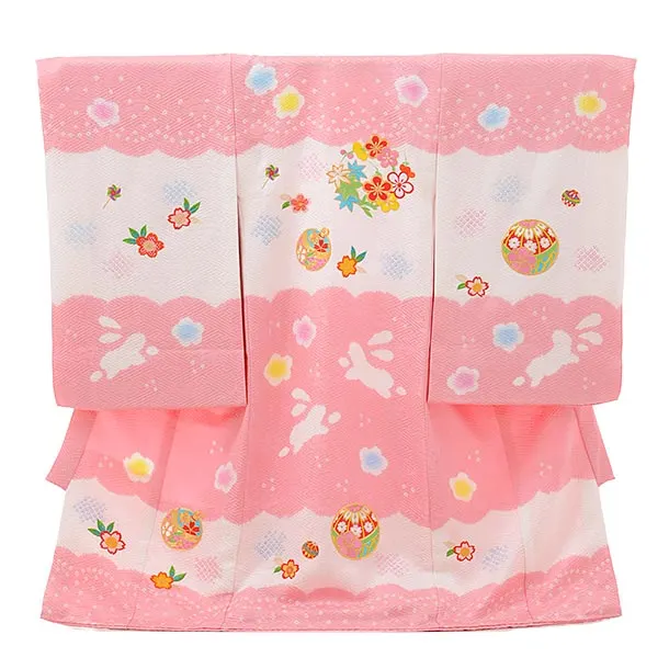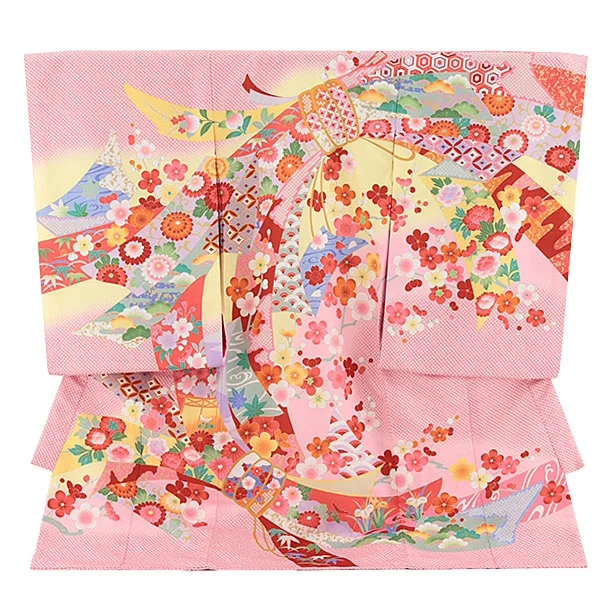 女児産着 お宮参り レンタル 正絹 1440 ピンク地 ぼたんに鳳凰