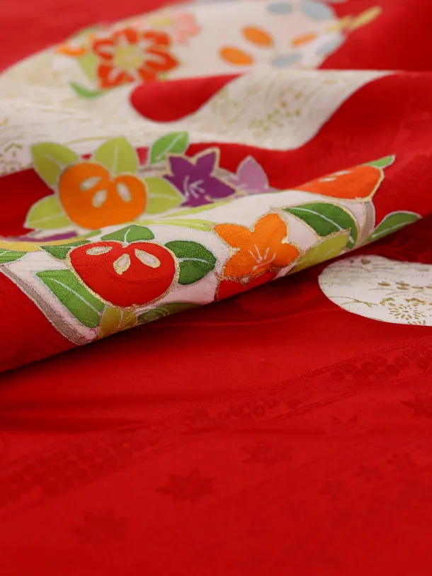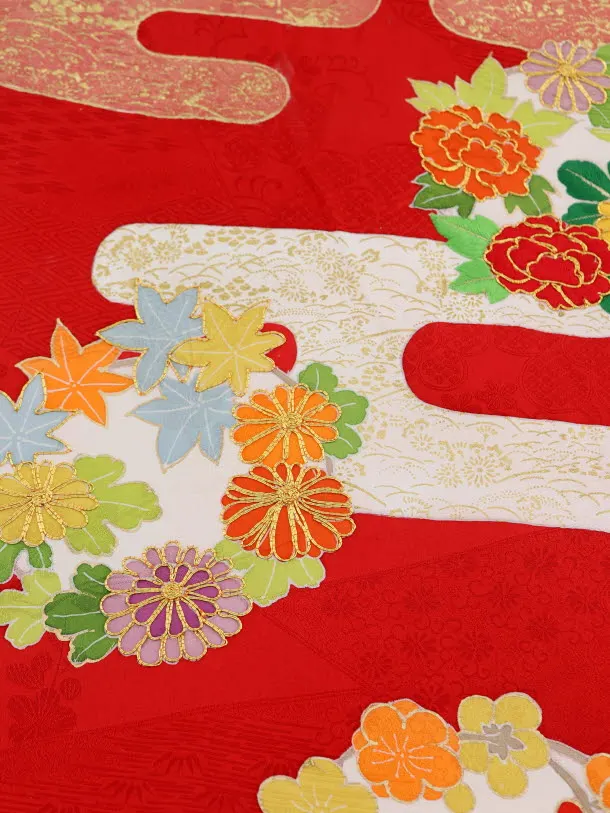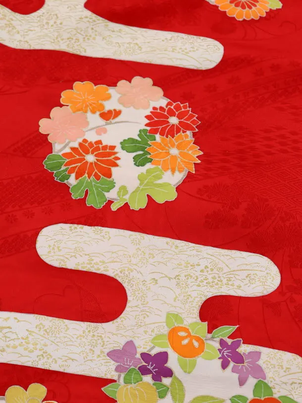 女児産着 お宮参り レンタル 正絹 1565 赤地 霞に花紋