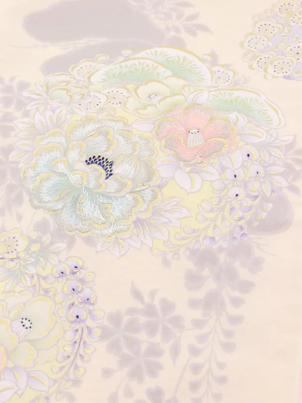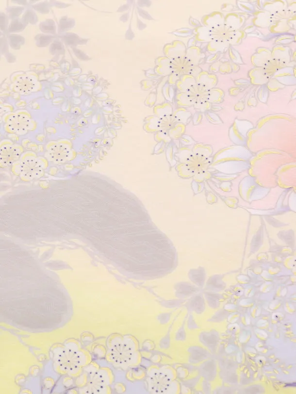 女児産着 お宮参り 1566 ナチュラルビューティー 薄黄色 梅に椿