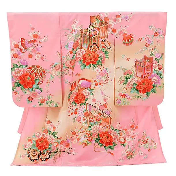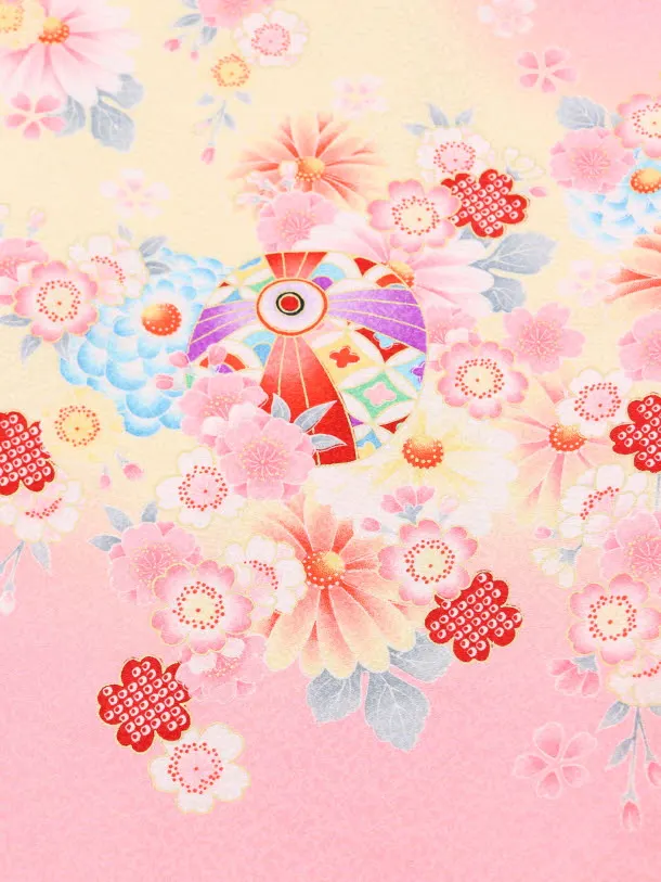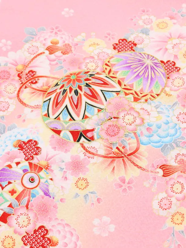 女児産着 お宮参り 1569 単衣 ピンクラメ地 桜にまり