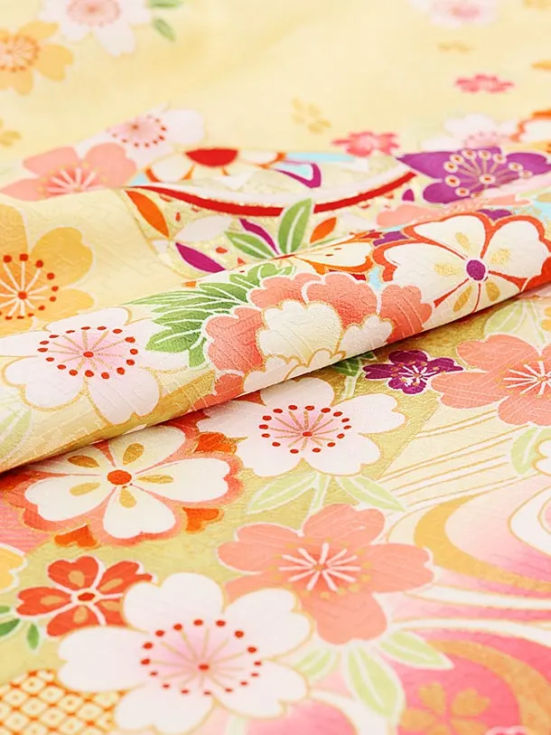 高級正絹産着レンタル 女の子(お宮参り)1595 クリーム 裾ピンク熨斗にまり