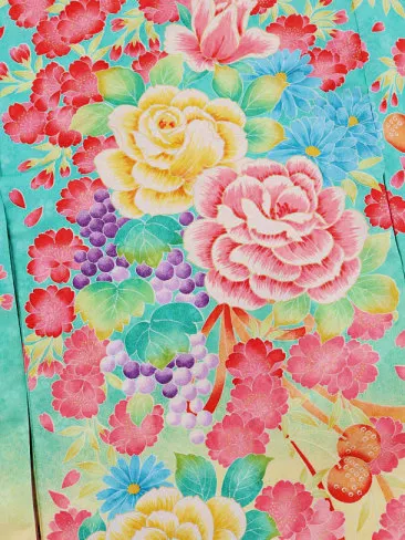 女児産着 お宮参り レンタル 1614 ターコーイズイエローぼかしバラ