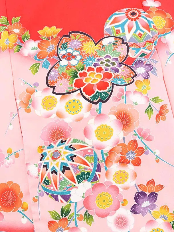 女児産着 お宮参り レンタル 1616 赤地ピンクぼかし桜まり