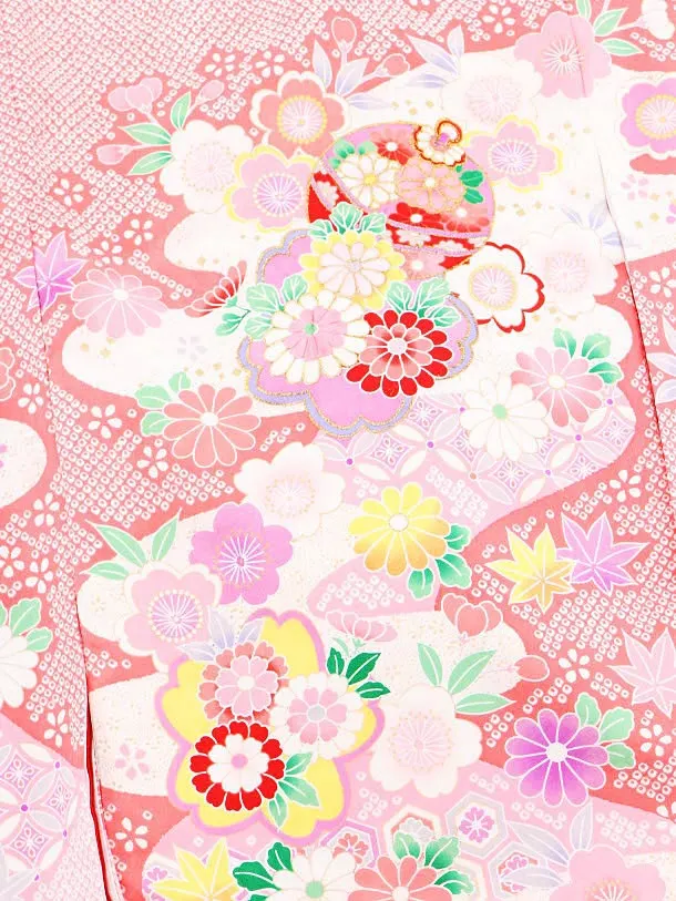 女児産着 お宮参り レンタル 1618 ピンク裾赤疋田柄花