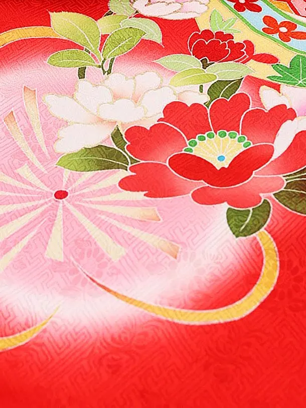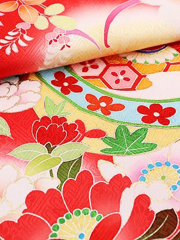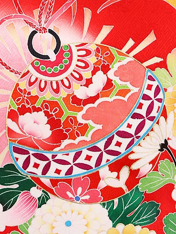 女児産着 お宮参りレンタル1692 正絹 赤地 鈴に花