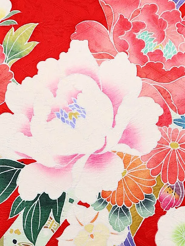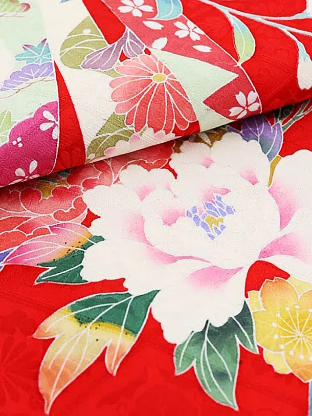 女児産着 お宮参りレンタル1695 高級正絹【百貫達夫】赤地 束ね熨斗に牡丹