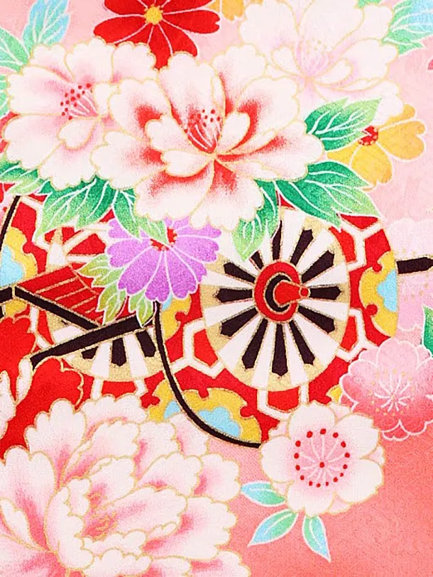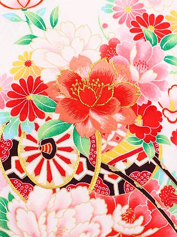 女児産着 お宮参りレンタル1700 正絹 白地ぼかし 花車 鼓 まり