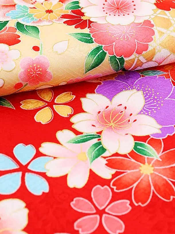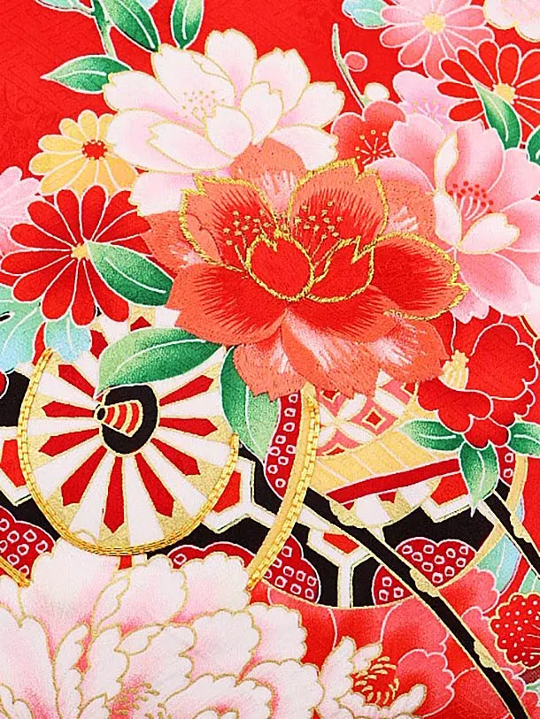 女児産着 お宮参りレンタル1701 正絹 赤地 花車 鼓 まり