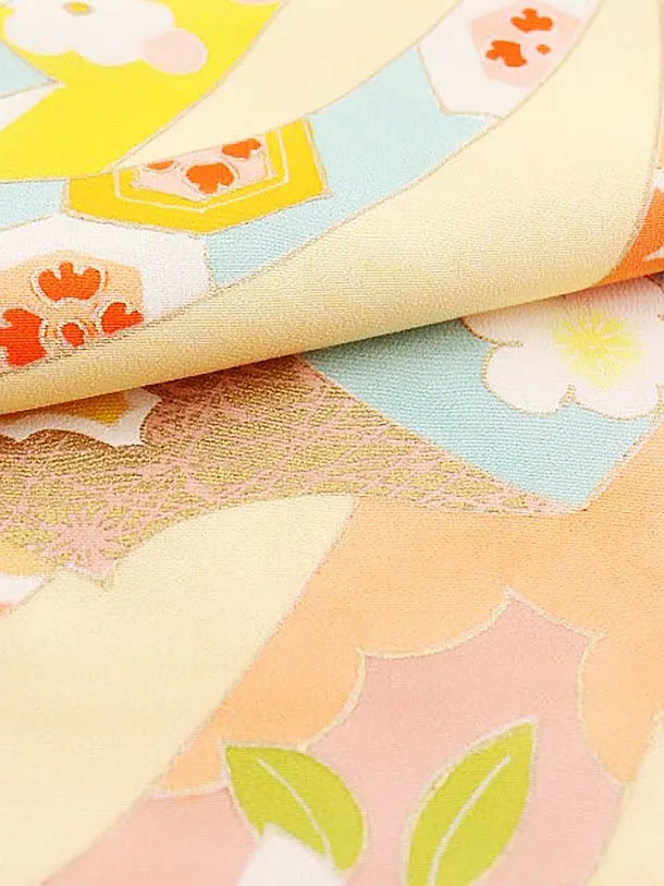 女児産着 お宮参りレンタル1703 正絹 薄オレンジ色 束ねのし 鈴