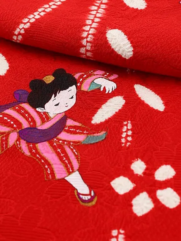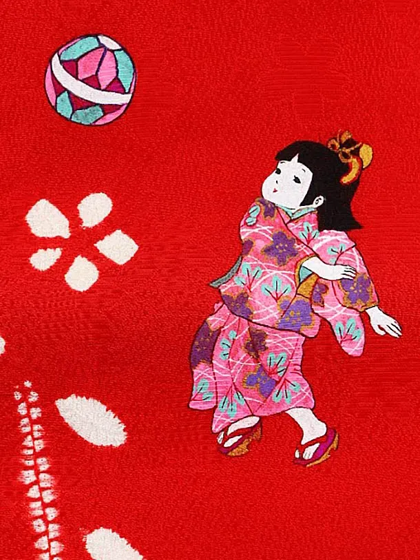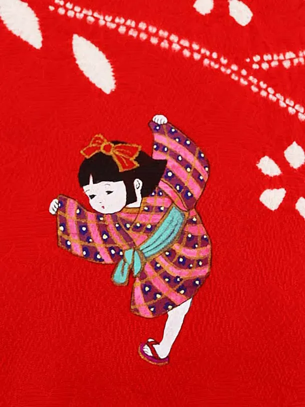 女児産着 お宮参りレンタル1706 正絹 赤地 梅に童べ