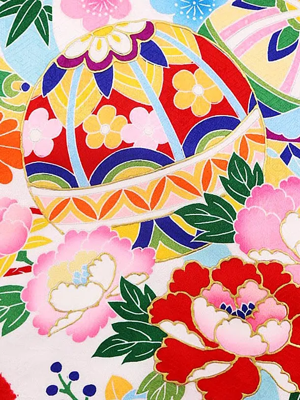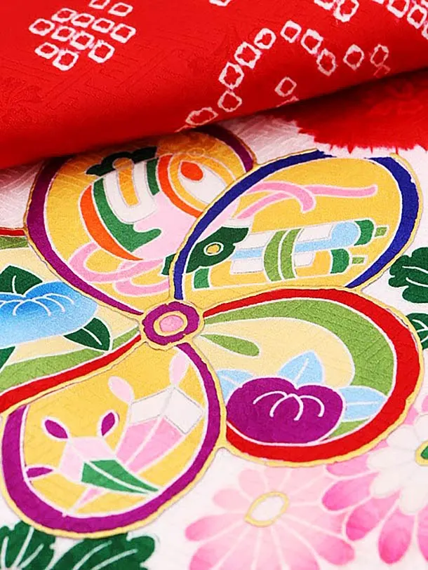 女児産着 お宮参りレンタル1707 正絹 赤地 まりにぼたん