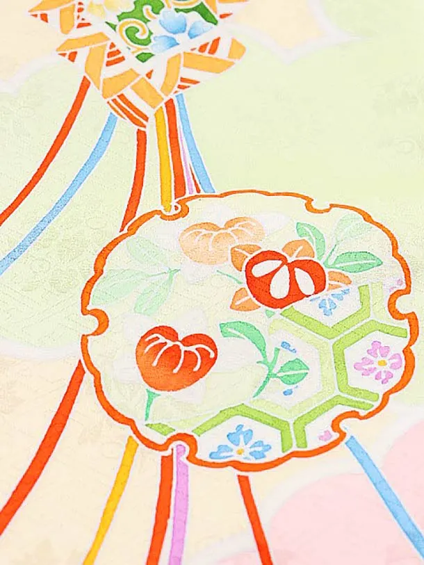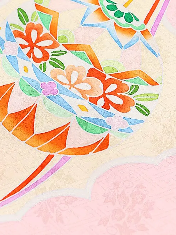 女児産着 お宮参りレンタル1708 正絹 ピンク地 雪輪 薬玉 まり