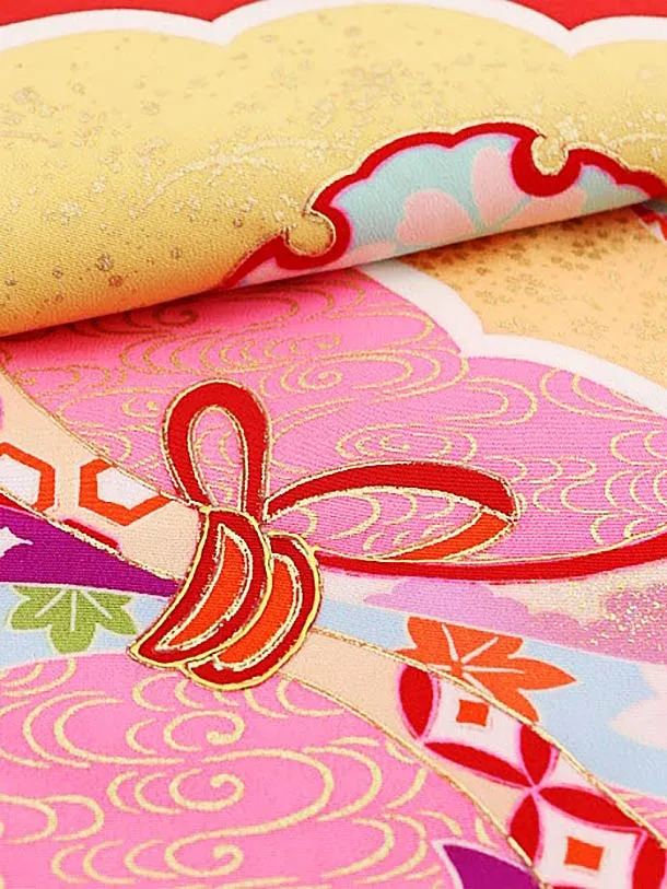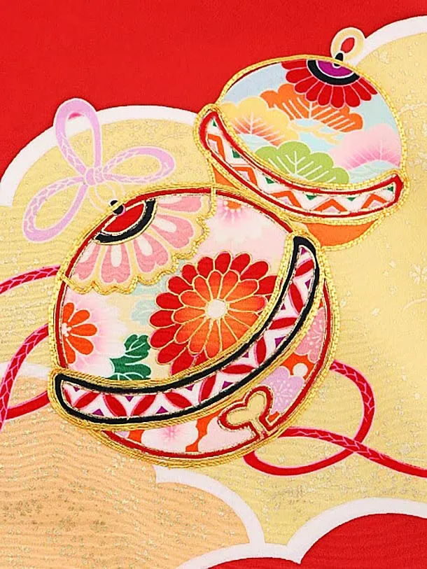 女児産着 お宮参りレンタル1714 正絹 赤地 雲取り まり