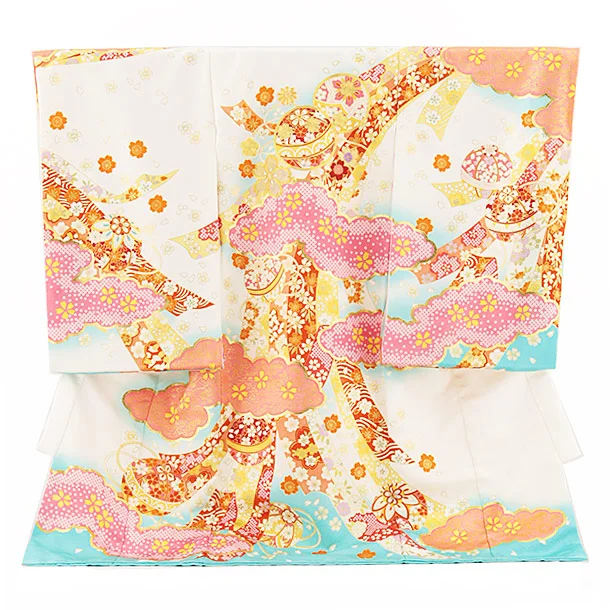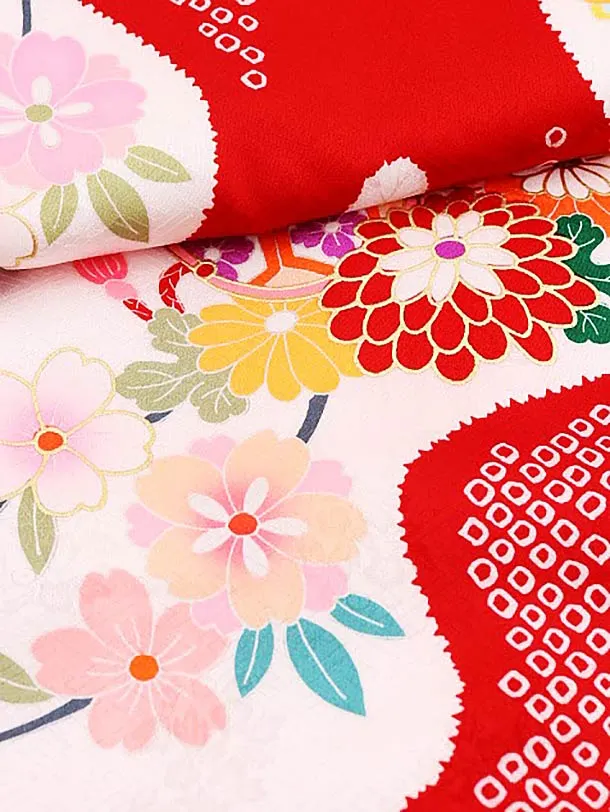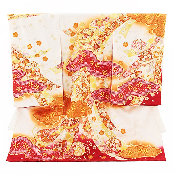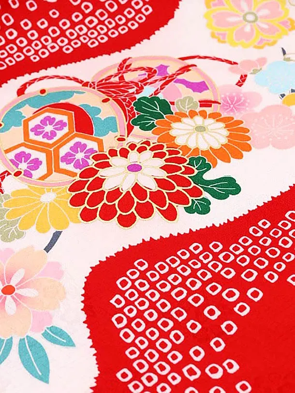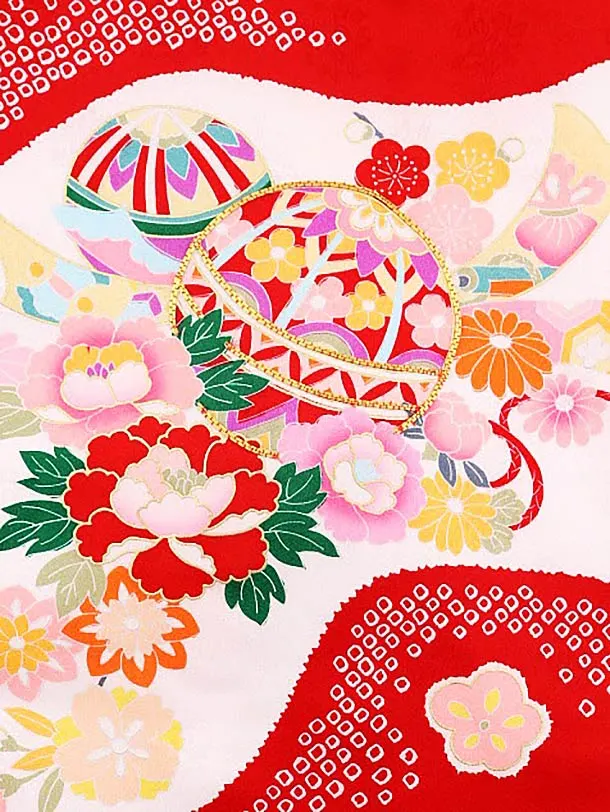 女児産着 お宮参りレンタル1720 正絹 白赤地 まり ぼたん