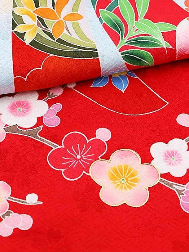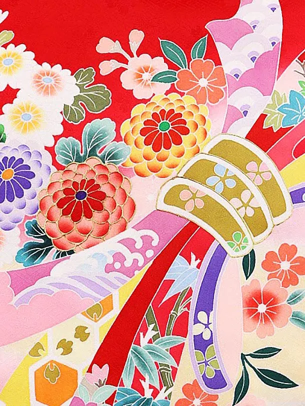 女児産着 お宮参りレンタル1724 正絹 赤地 束ねのし 花尽くし