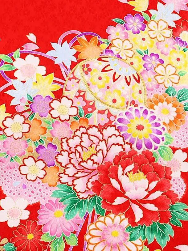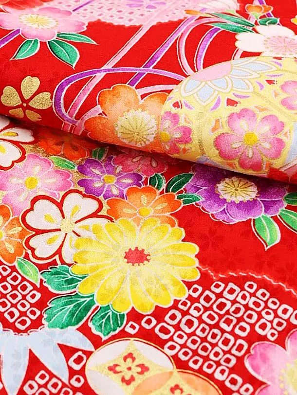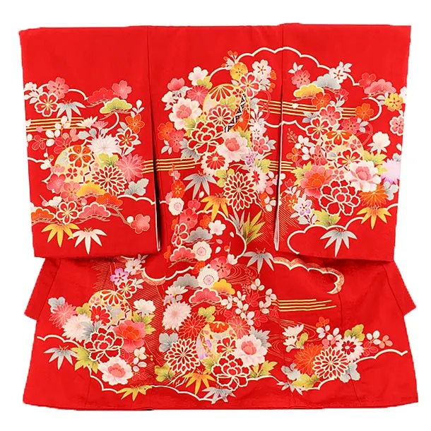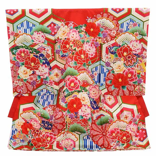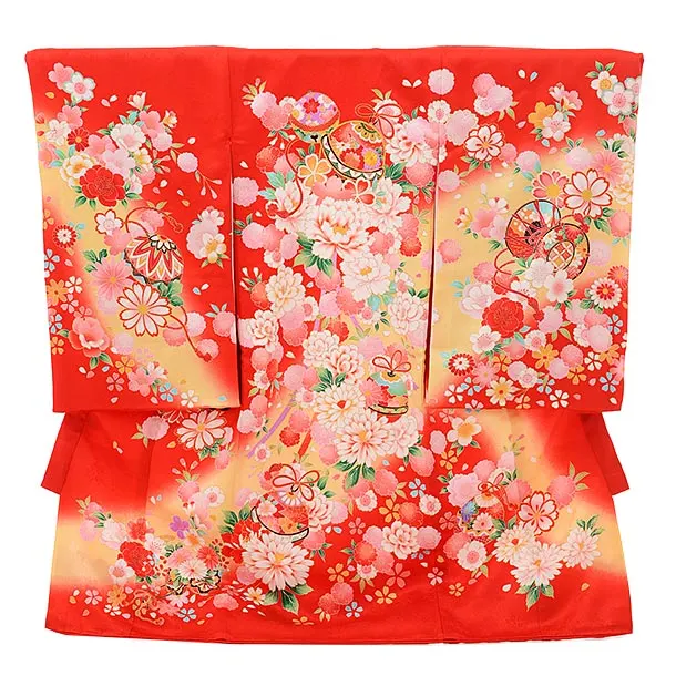 女児産着 お宮参りレンタル1727 正絹 赤地 まり ぼたん