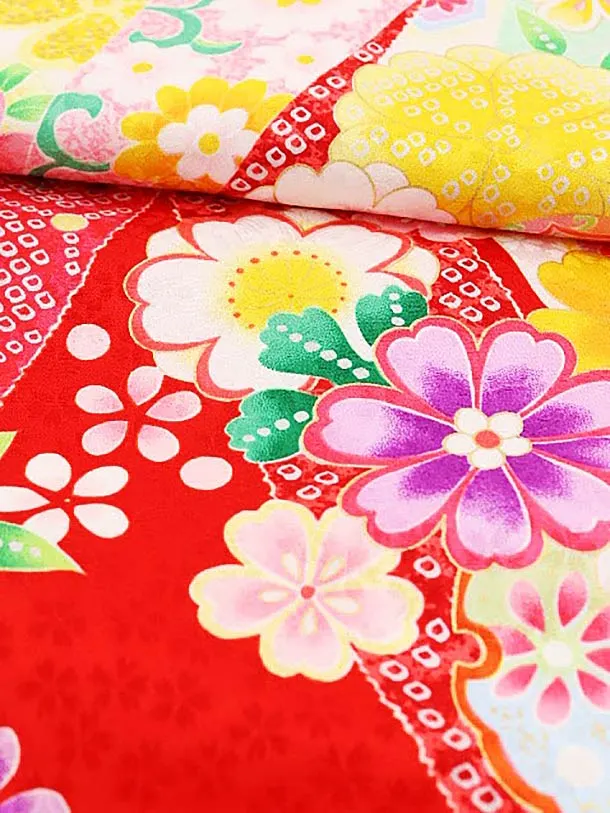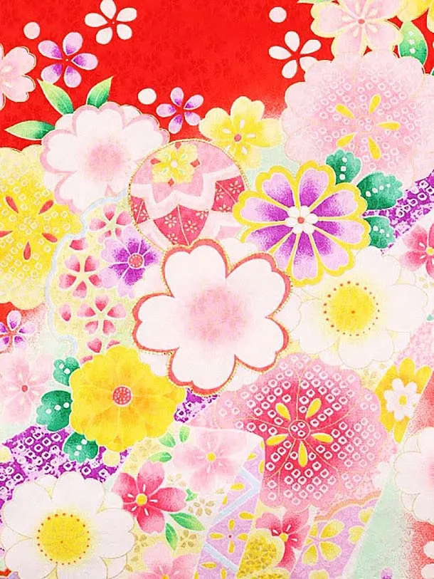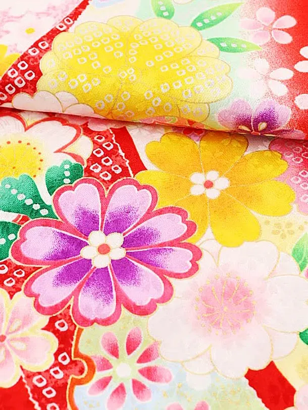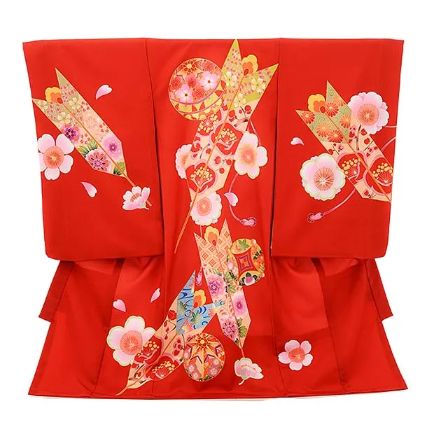 女児産着 お宮参りレンタル1729 正絹 赤地 熨斗に花散らし