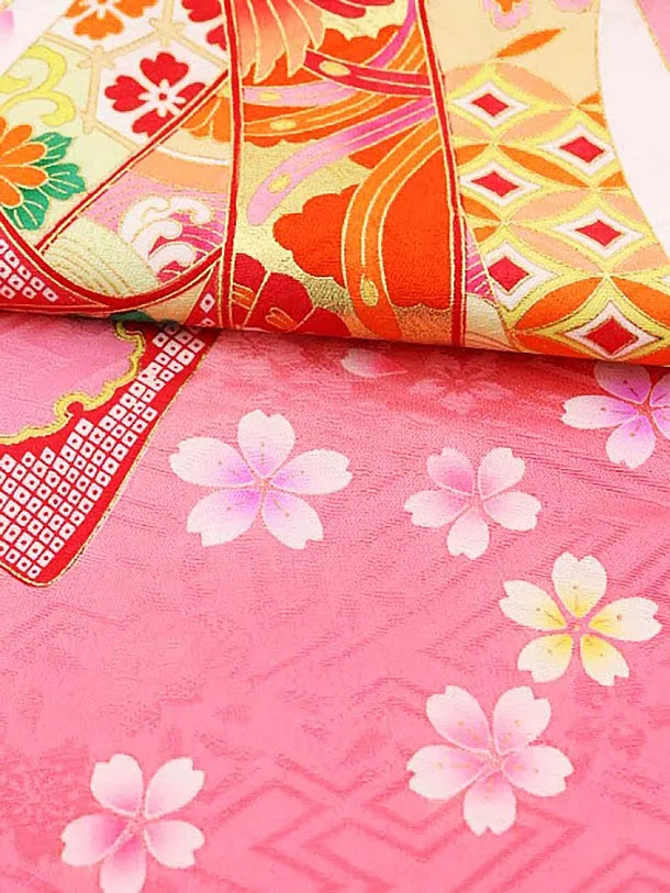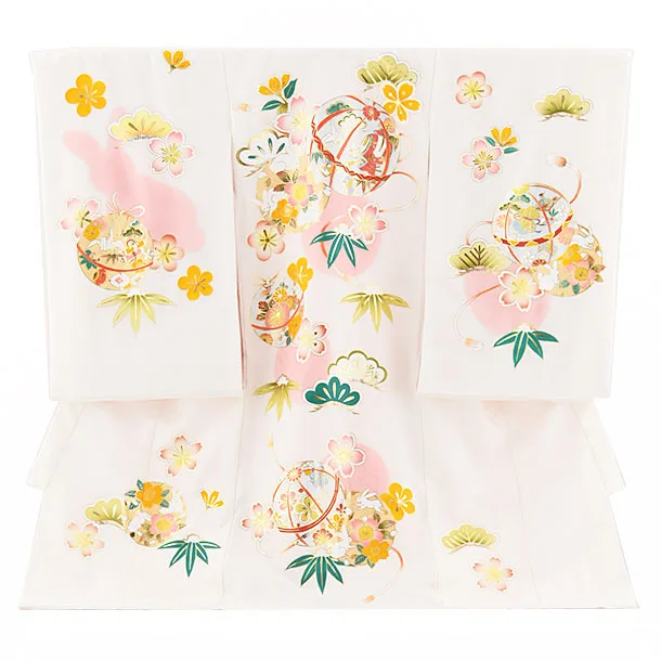 女児産着 お宮参りレンタル1735 正絹 白地 裾ピンク 束ねのし