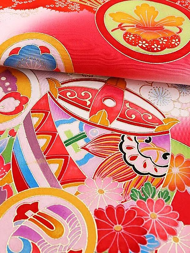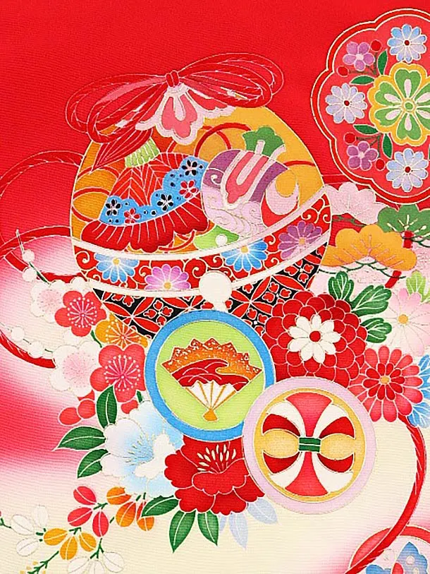 女児産着 お宮参りレンタル1736 正絹 赤地 鈴に丸紋