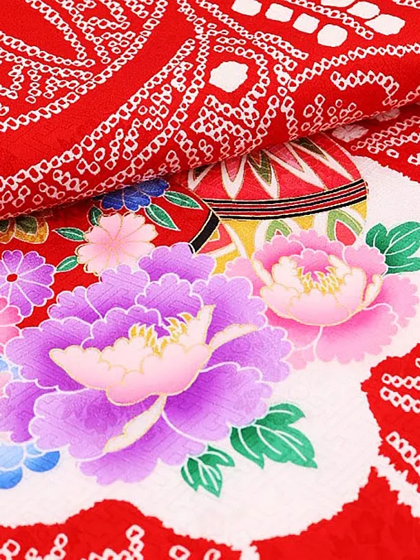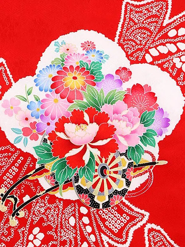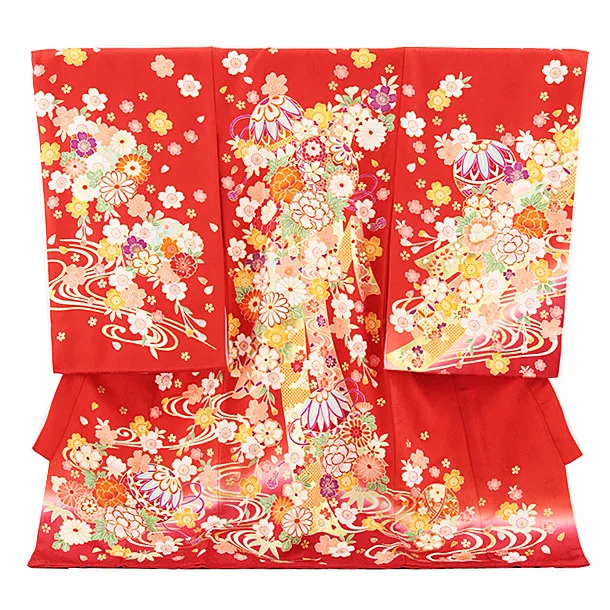 女児産着 お宮参りレンタル1738 正絹 赤地 熨斗に花車