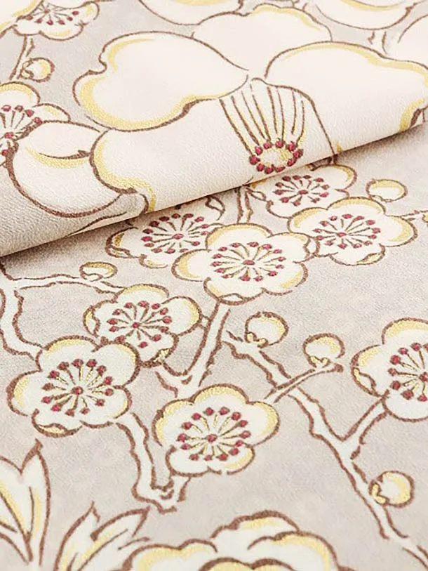 女児産着 お宮参りレンタル1742 九重 ベージュ 梅 ぼたん 椿