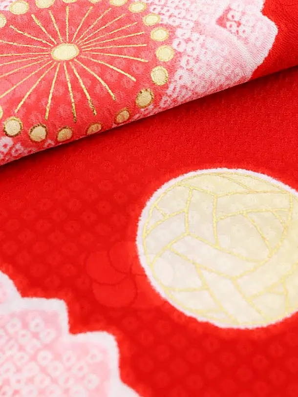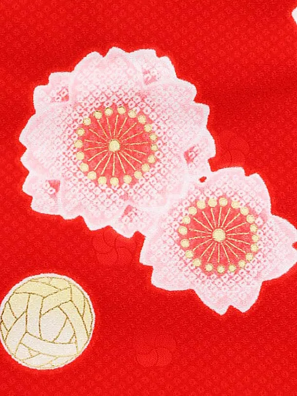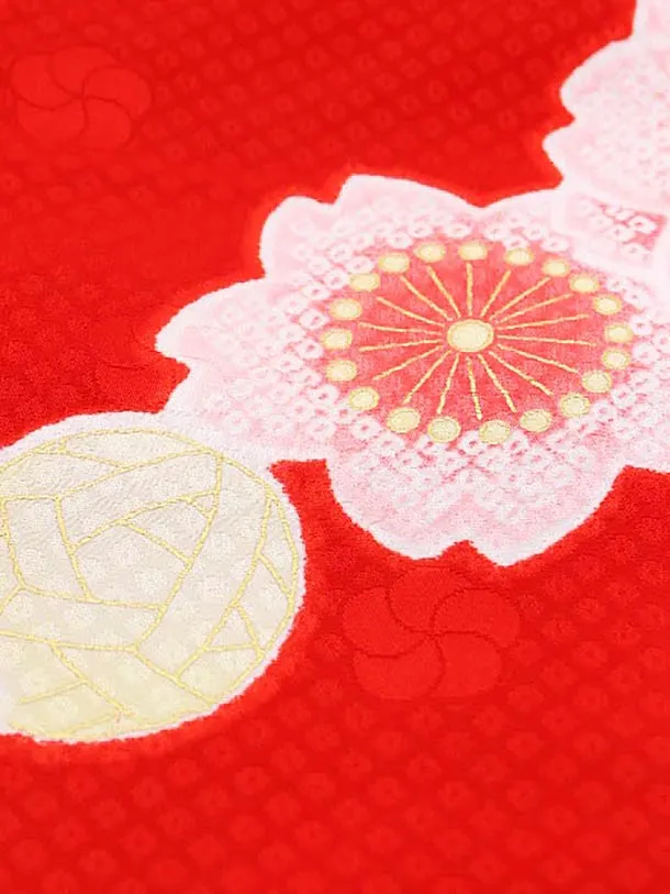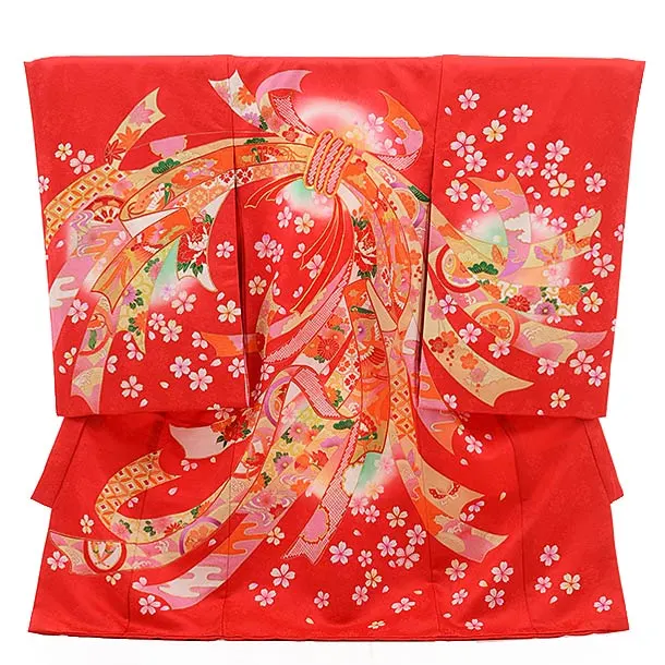 女児産着 お宮参りレンタル1744 赤地 桜 まり