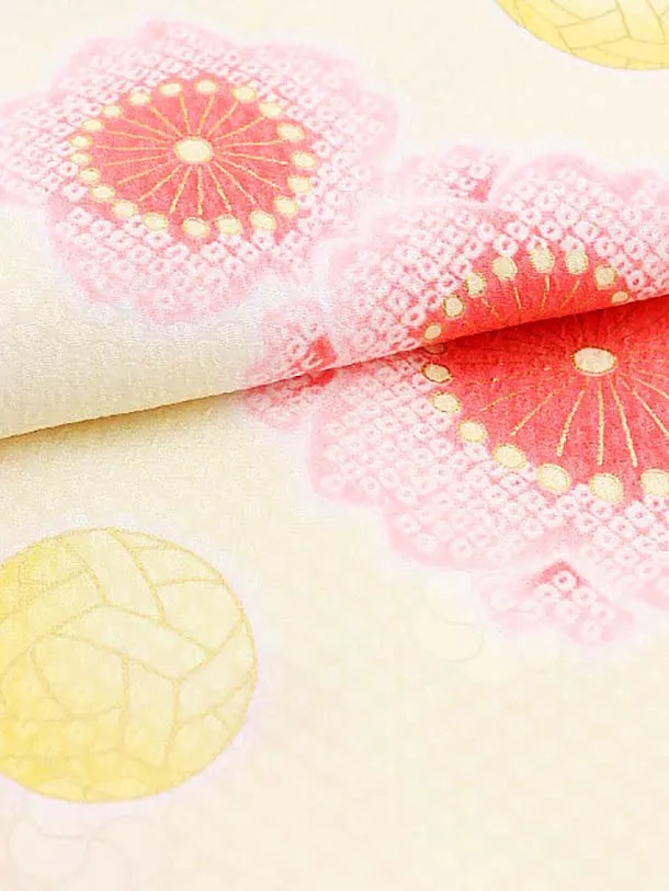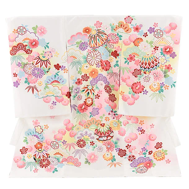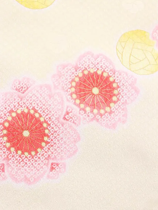 女児産着 お宮参りレンタル1746 クリーム色地 桜 まり