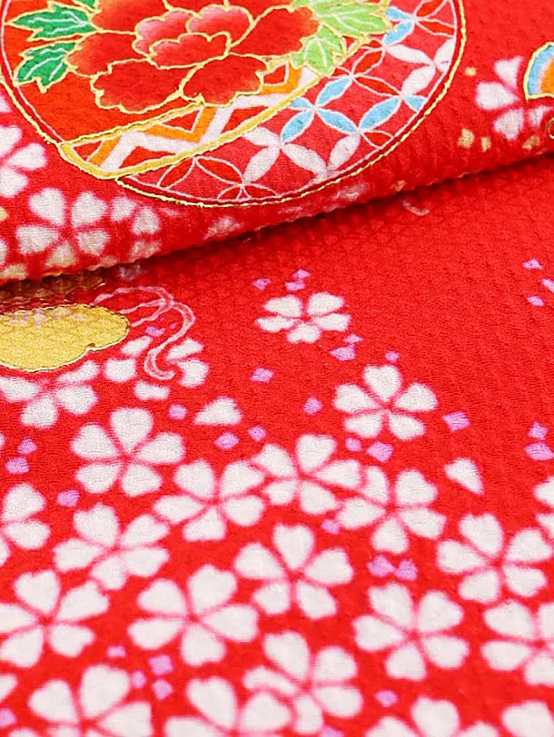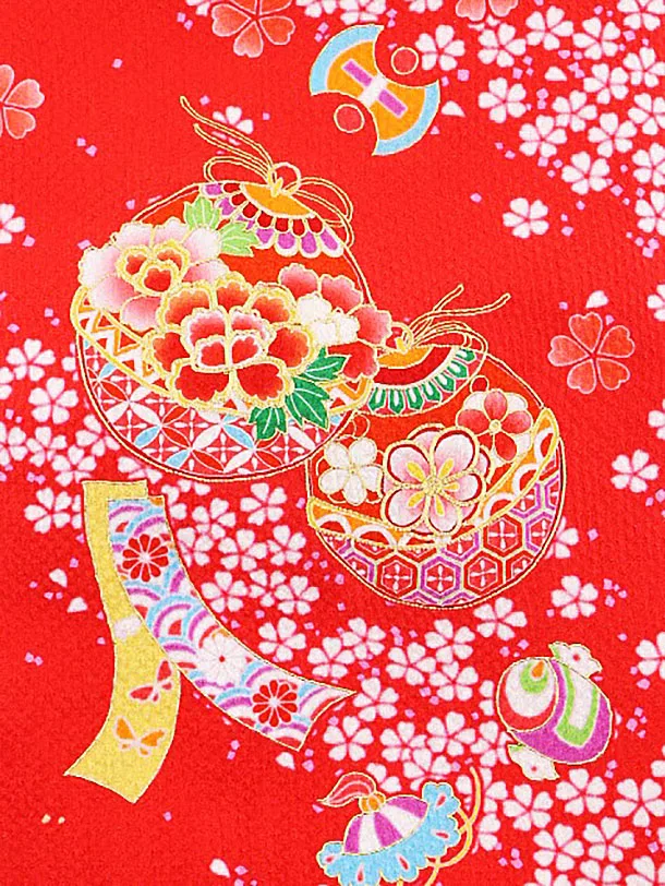 女児産着 お宮参りレンタル1764 【高級正絹】赤地 鈴に宝尽くし