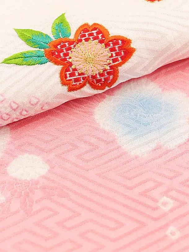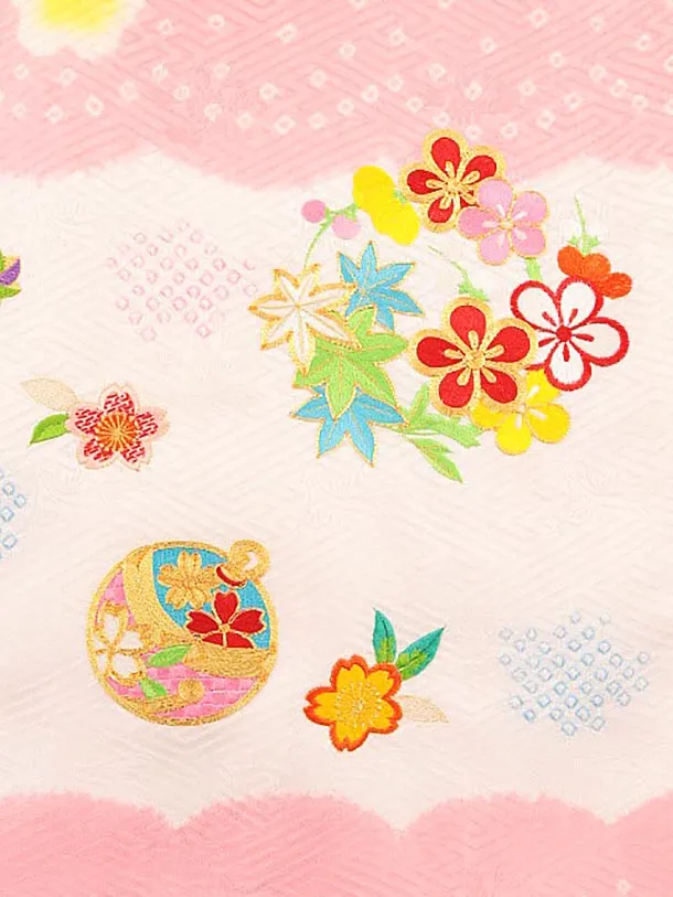 女児産着 お宮参りレンタル1809 ピンク地 刺繍 鈴まり桜