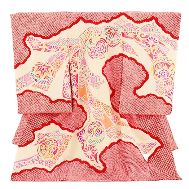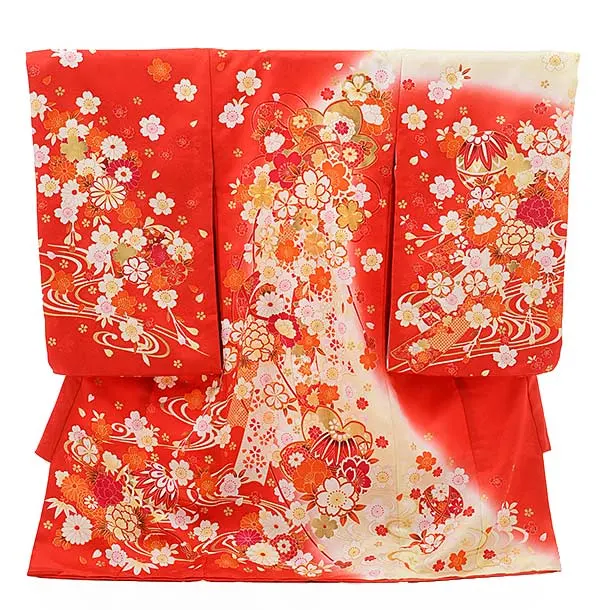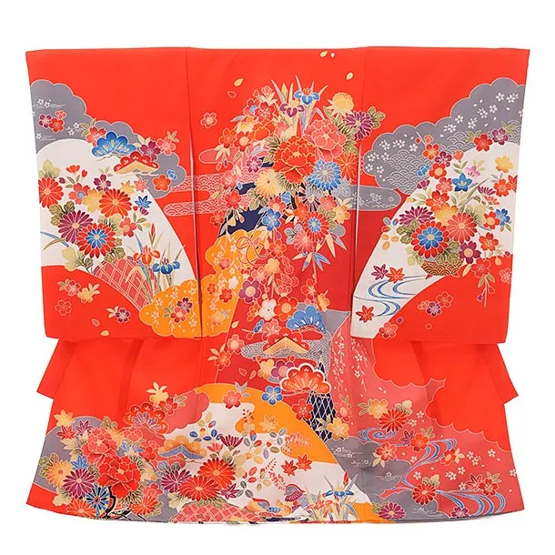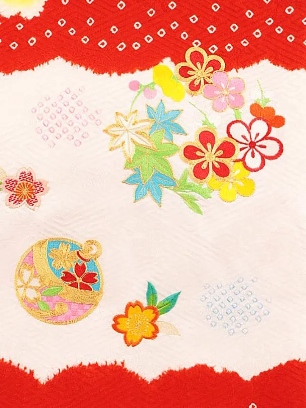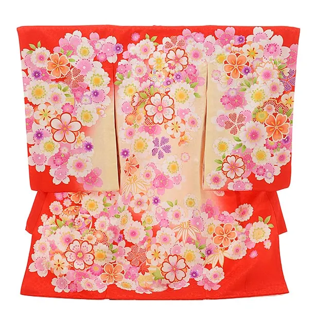 女児産着 お宮参りレンタル1810 赤地 刺繍 鈴まり桜