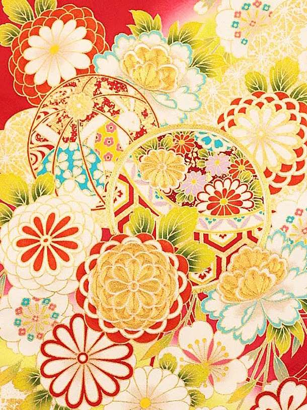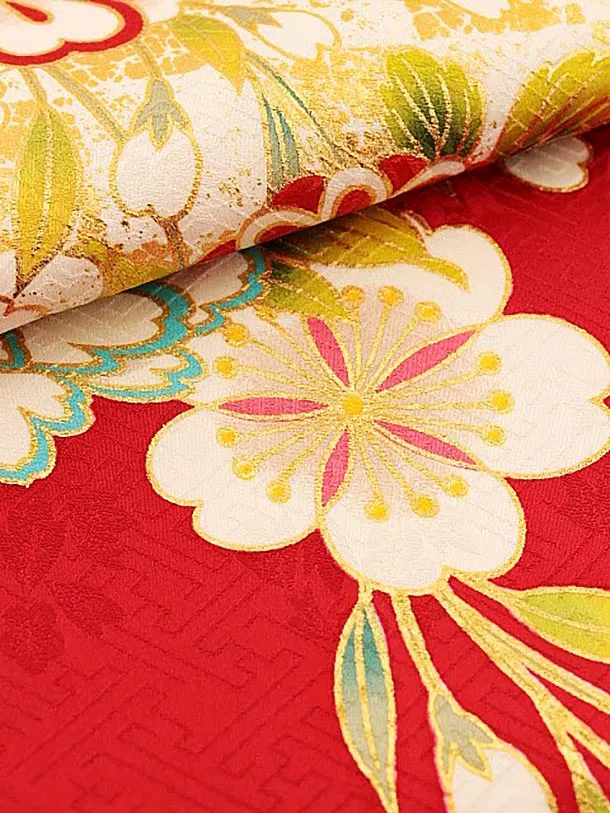 女児産着 お宮参りレンタル1812 京友禅 赤地 桜ぼたんまり