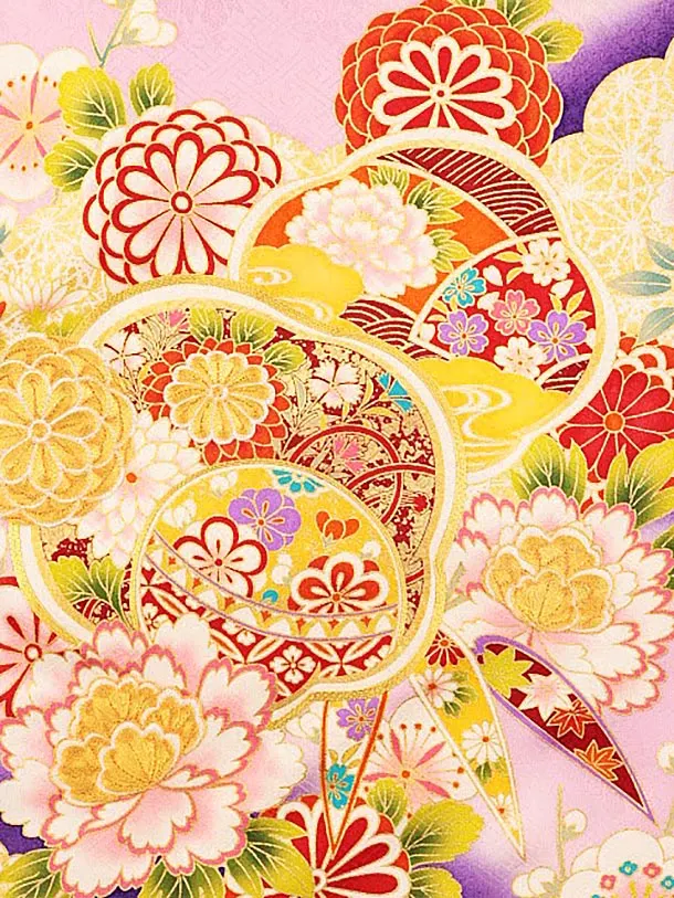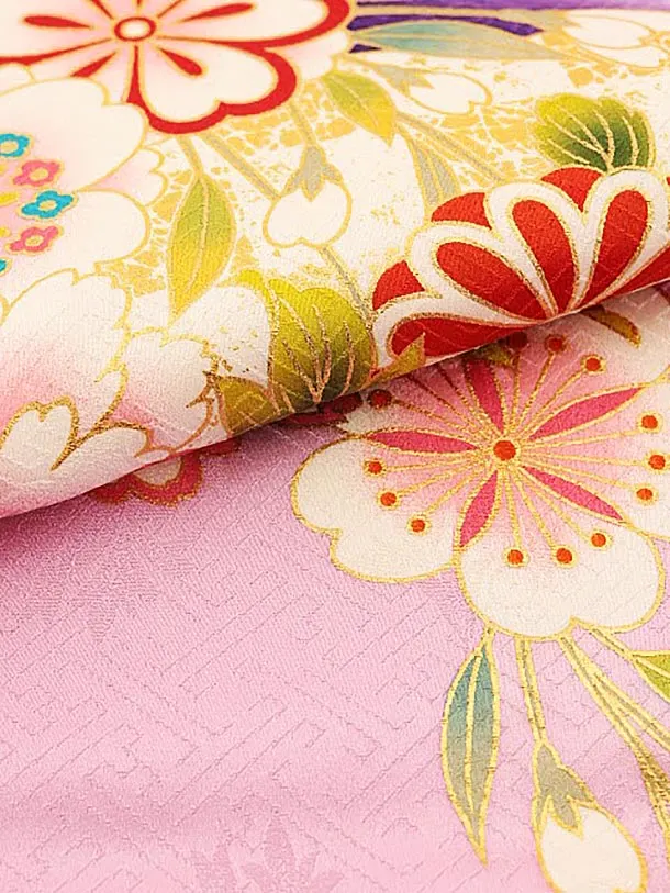 女児産着 お宮参りレンタル1815 京友禅 うす紫地裾紫 ぼたん菊梅