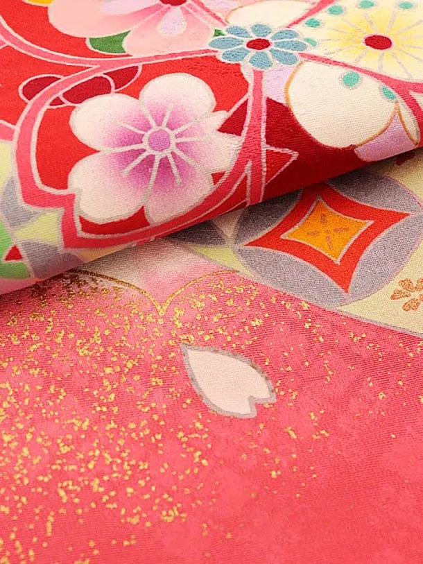 女児産着 お宮参りレンタル1821 白地 裾ピンク 花鈴
