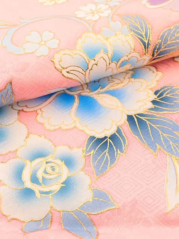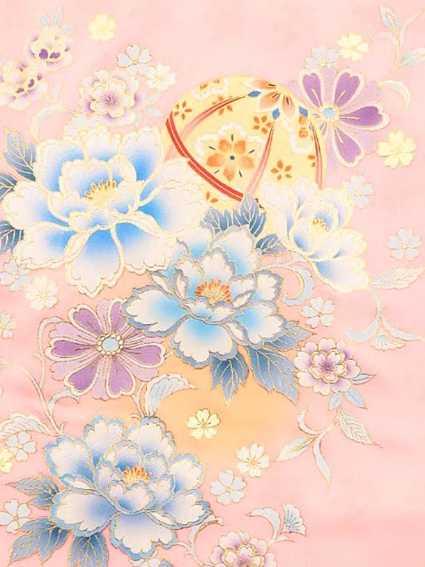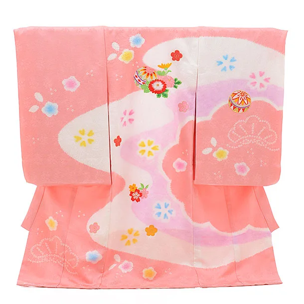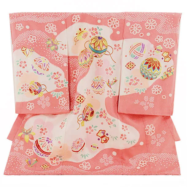 女児産着 お宮参りレンタル1828 ピンク地 ぼたんにまり