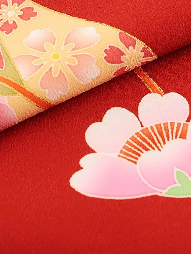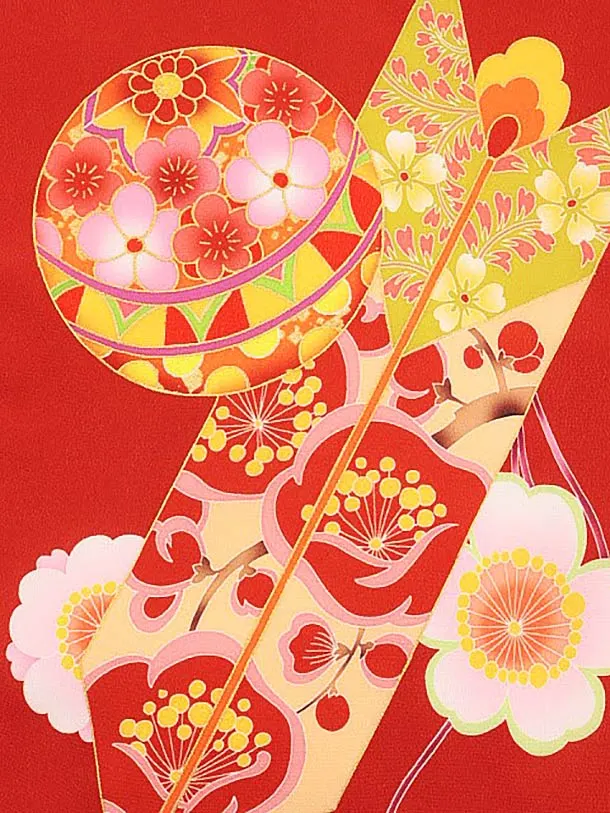 女児産着 お宮参りレンタル1834 赤地 矢羽根にまり