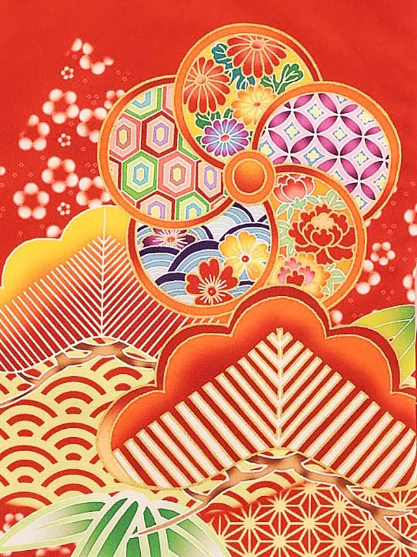 女児産着 お宮参りレンタル1867 赤地 松竹梅