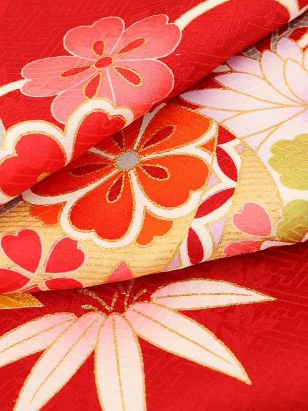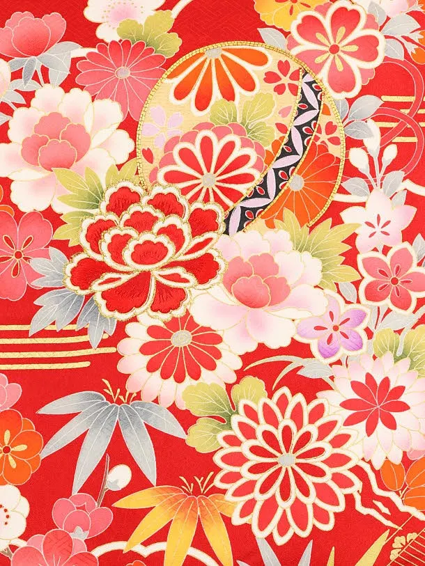 女児産着 お宮参りレンタル1882 正絹 赤地 牡丹 まり