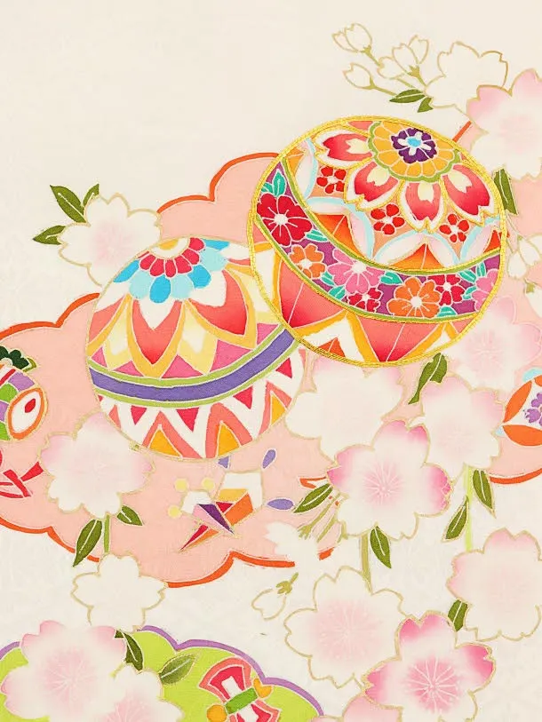 女児産着 お宮参りレンタル1892 【高級正絹】白地雲取り 鞠桜