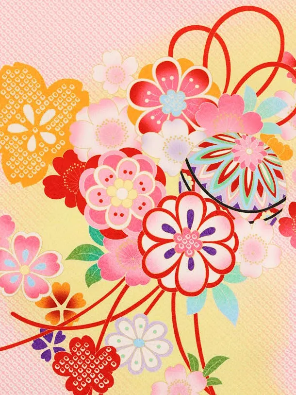 女児産着 お宮参りレンタル1906 ピンク疋田模様裾水色 鞠と桜