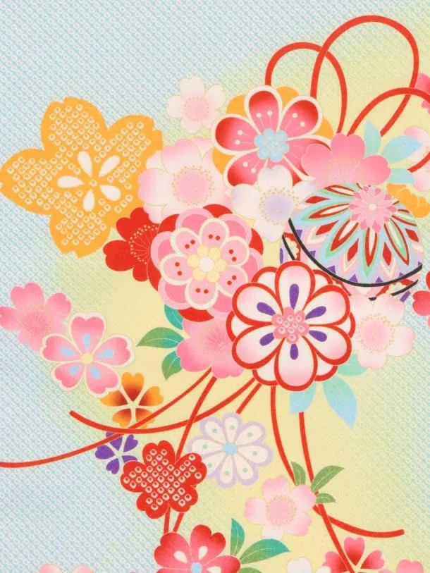 女児産着 お宮参りレンタル1946 水色疋田模様 鞠と桜