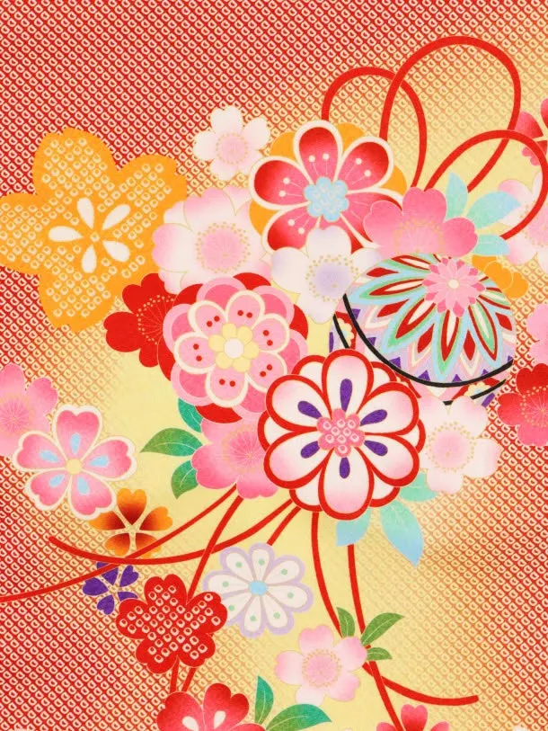 女児産着 お宮参りレンタル1948 赤疋田模様 鞠と桜