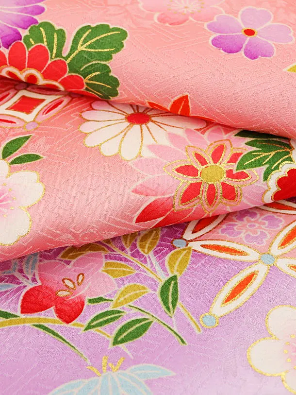 女児産着 お宮参りレンタル1961 正絹 ピンク地 花丸文