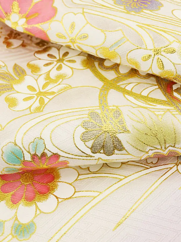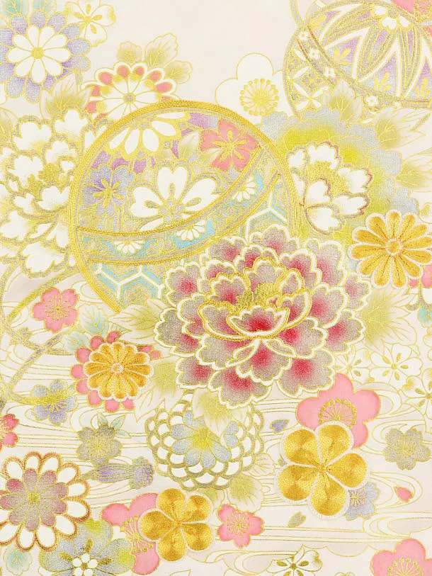 女児産着 お宮参りレンタル1962 正絹 白地裾紫 金彩 牡丹とまり