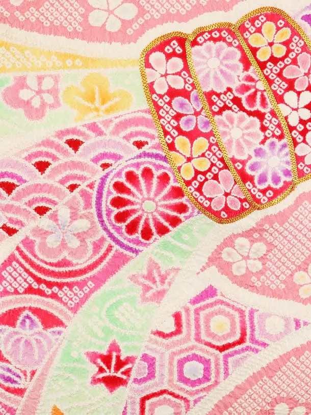 女児産着 お宮参りレンタル1983【高級正絹】ピンク地 絞り束ね熨斗