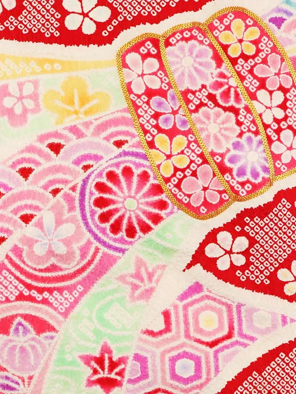 女児産着 お宮参りレンタル1984【高級正絹】赤地 絞り束ね熨斗