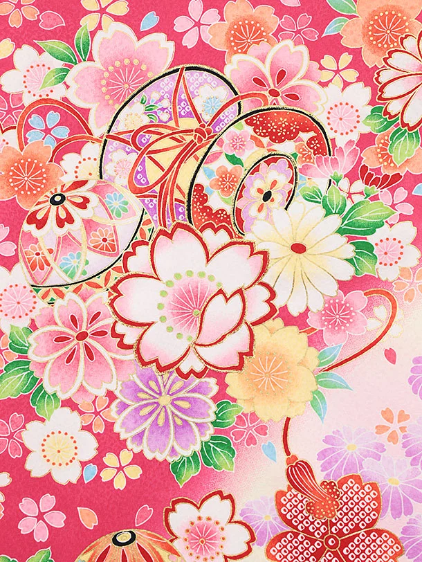 夏用 女児産着 お宮参り2089 単衣 ローズピンク地 鼓に鞠、花