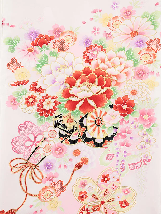 夏用 女児産着 お宮参り2098 単衣 白地 花車に鞠