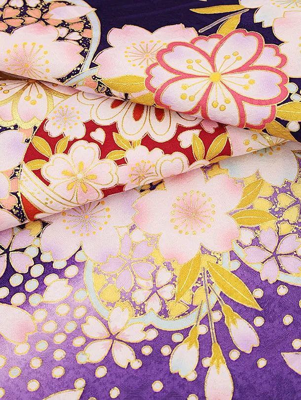 女児産着 お宮参りレンタル2113【高級正絹】紫地 鞠、花