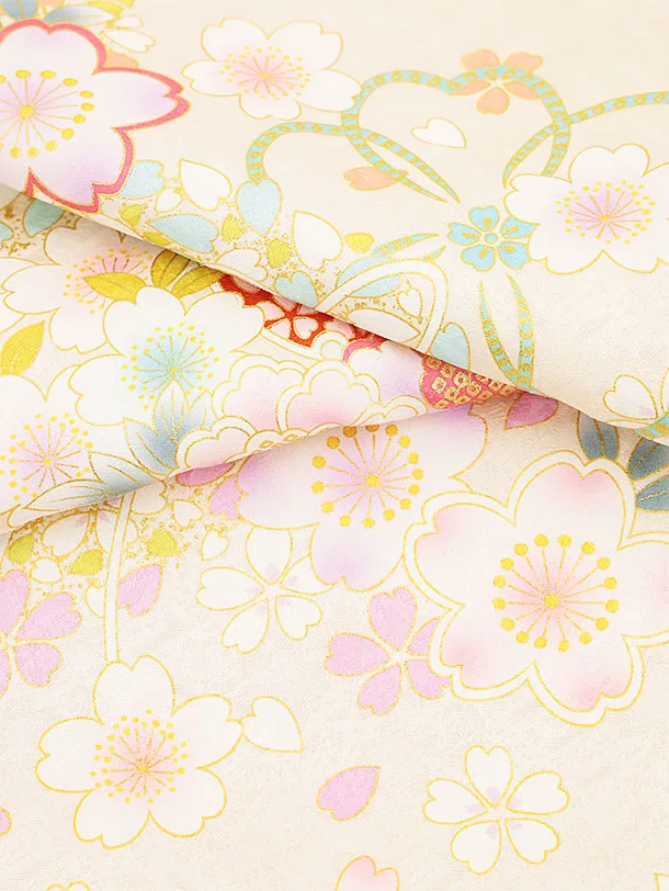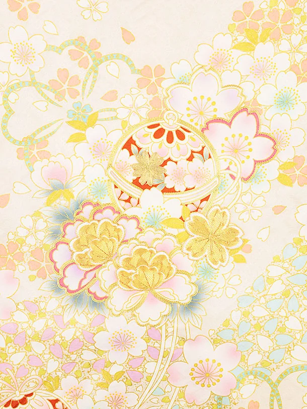 女児産着 お宮参りレンタル2182【高級正絹】 薄卵色 鈴 牡丹